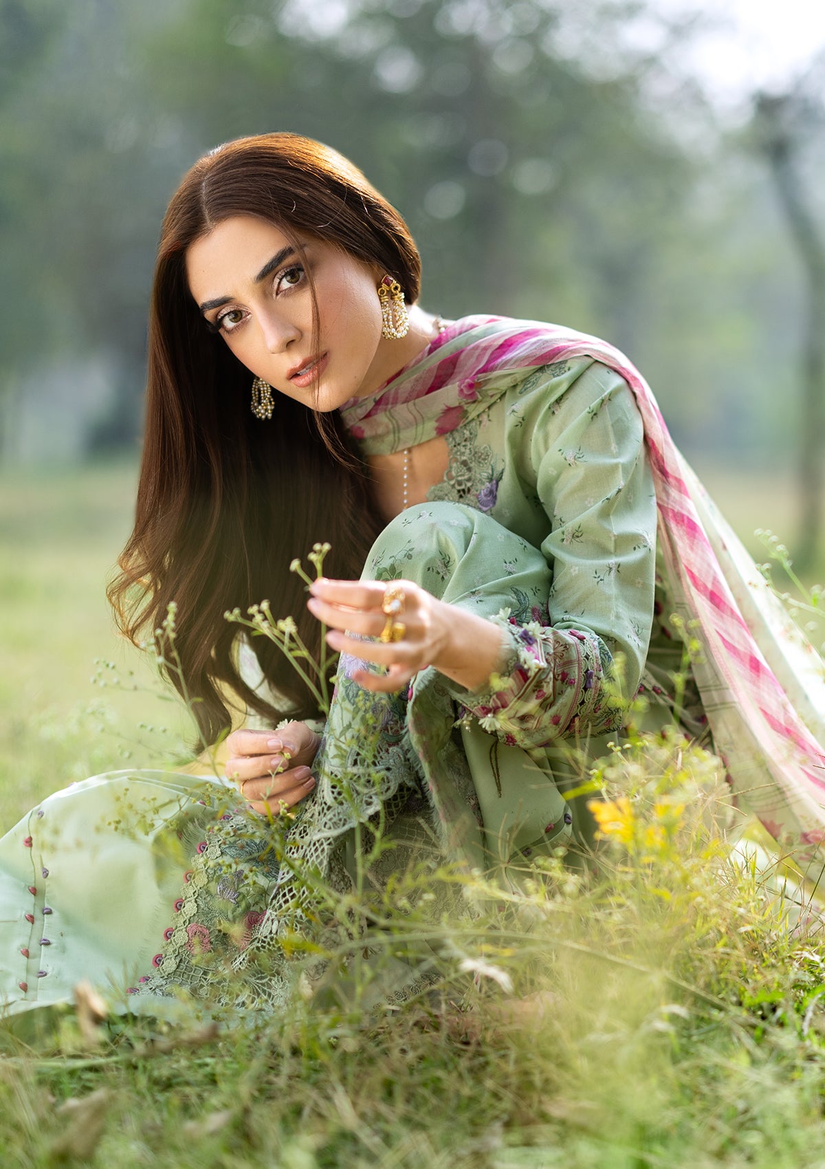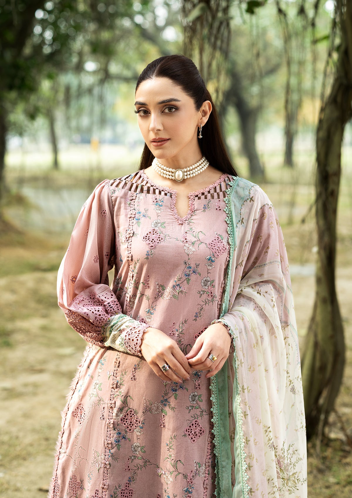 The chiffon dupatta adds movement and softness to the outfit. Its airy texture pairs well with the lawn shirt and completes the look with a smooth finish. The contrast between the printed shirt and flowing dupatta creates a fresh and coordinated appearance suitable for daytime outings and casual meetups.