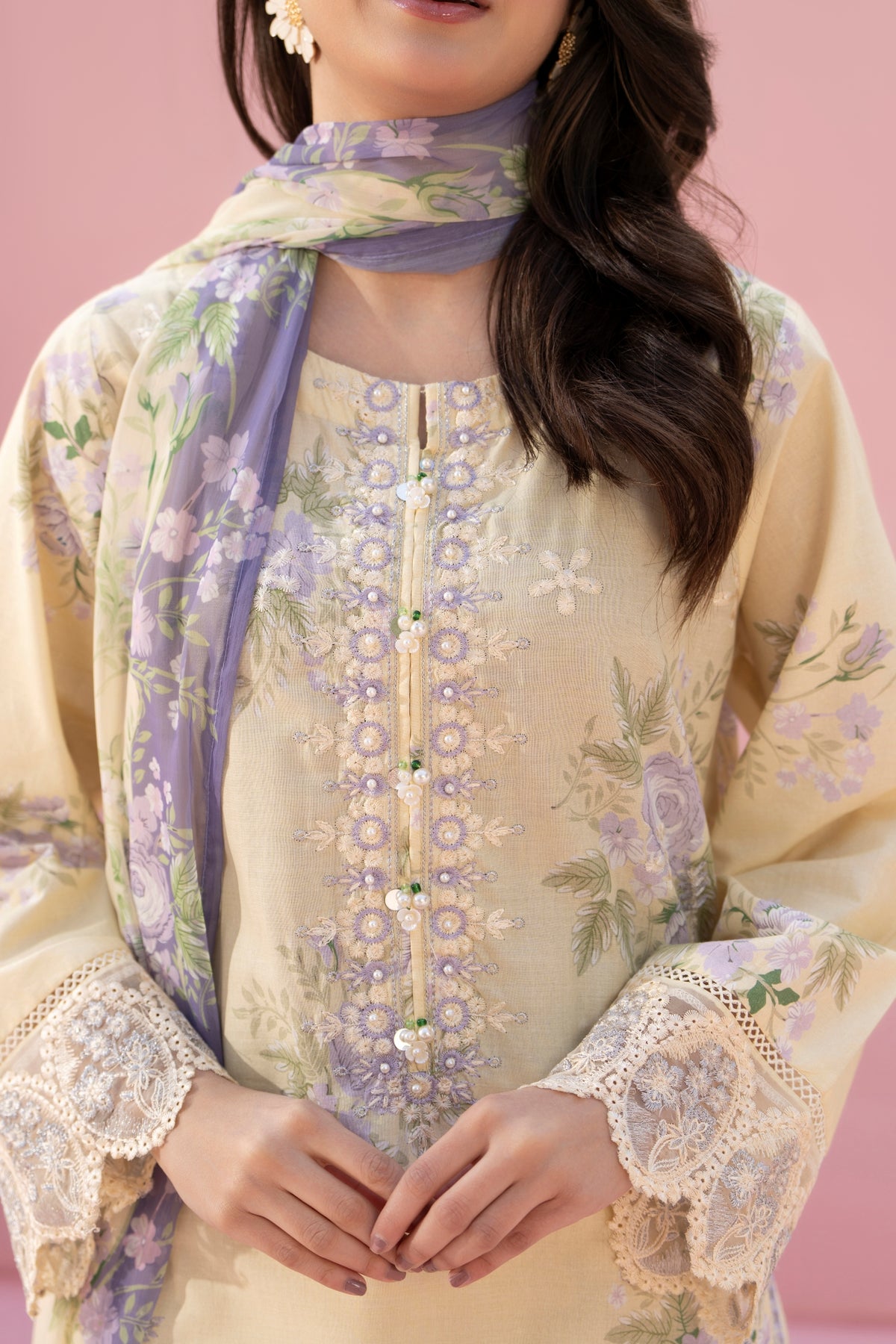 Dupatta:Chiffon Printed Shirt:Printed With Embroidered Shirt Trouser:Printed Cotton Trouser Disclaimer:Actual Product Color May Vary Slightly From The Image.