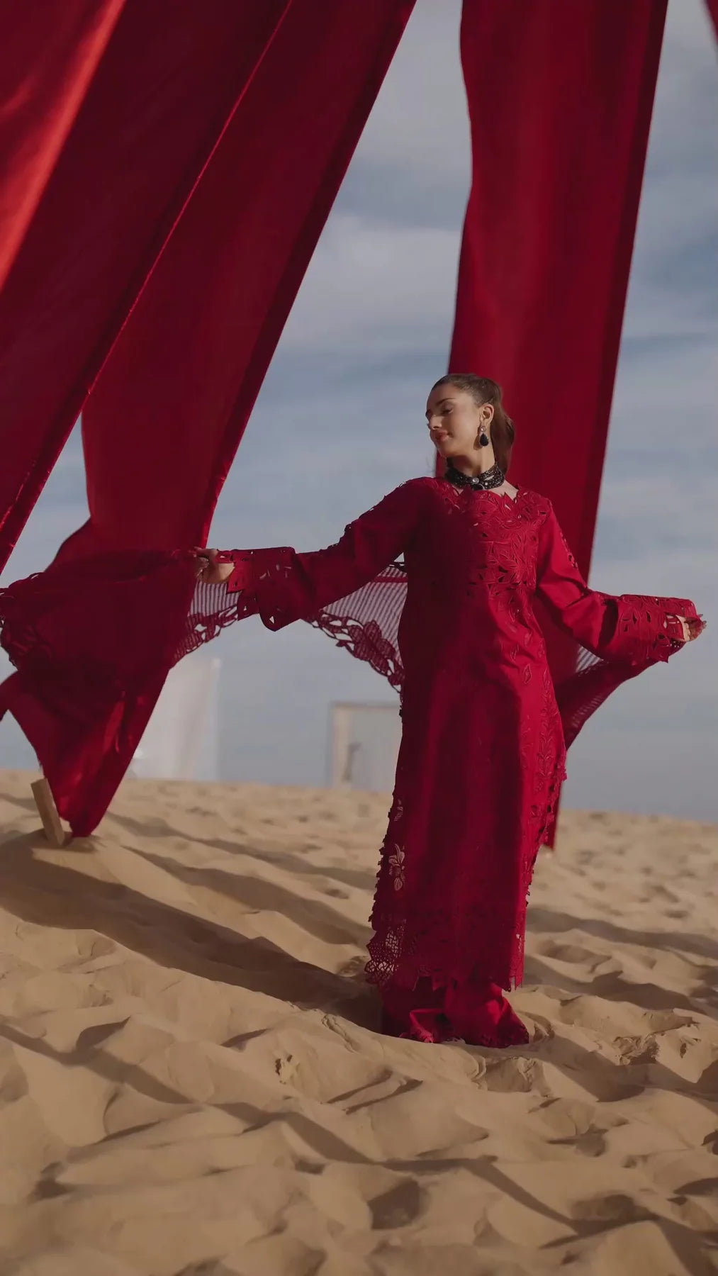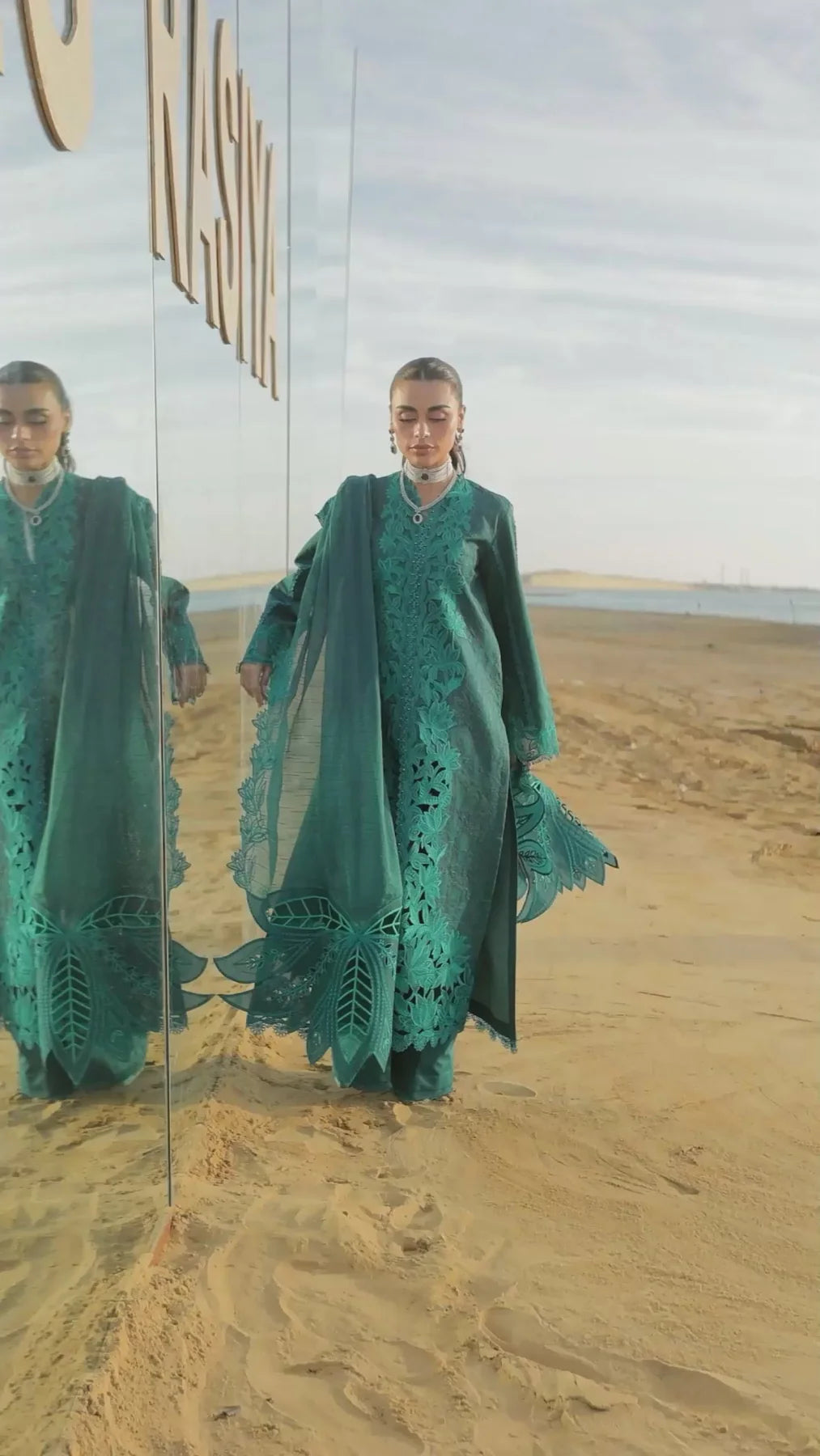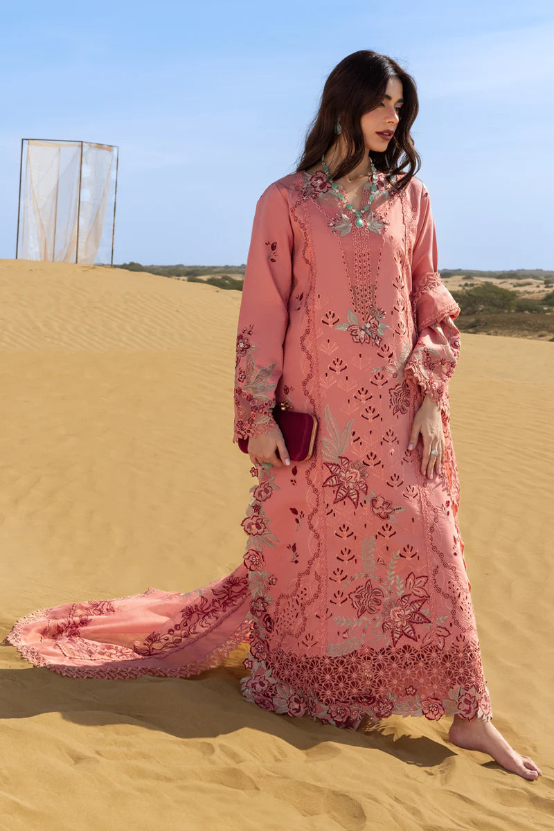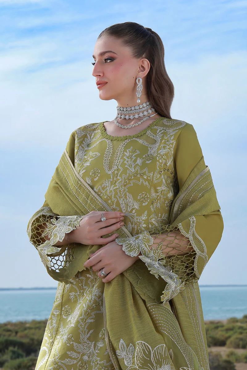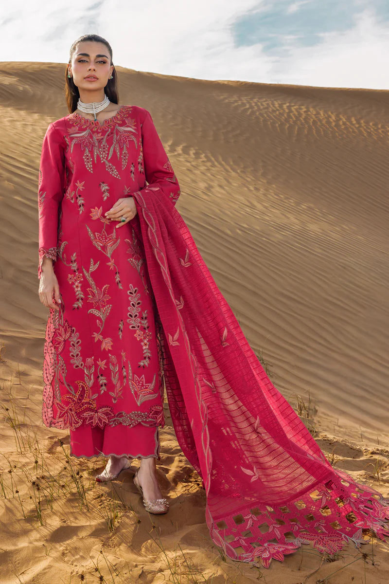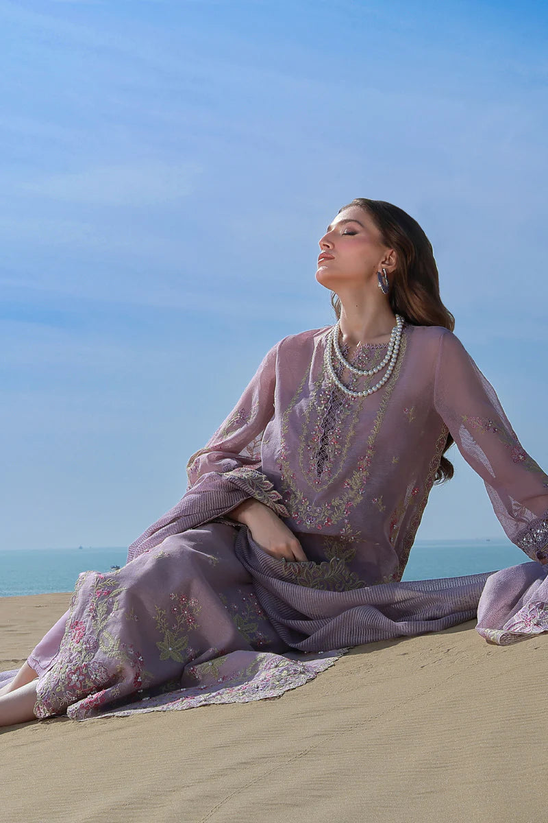 Front Neck Schili 1 Piece Dyed Lawn Embroidered Front Center Panel 53 Inches Dyed Lawn Laser Cut Embroidered Front Right Side Panel 53 Inches Dyed Lawn Laser Cut Embroidered Front Left Side Panel 53 Inches Dyed Lawn Back 53 Inches Dyed Lawn Sleeve 26 Inches Dyed Lawn Lining 1 Meter Schifli Motif Right Side 1 Piece Schifli Motif Left Side 1 Piece Schifli Front Border Right Side 1 Piece Schifli Front Border Left Side 1 Piece Dyed Textured Embroidered Dupatta 2.5 Meters Dyed Organza Embroidered Back Border 90 Inches Dyed Organza Embroidered Sleeve Motif 1 Piece Dyed Organza Embroidered Trouser Border 1 Piece Dyed Organza Embroidered Dupatta Right Side Pallu 1 Piece Dyed Organza Embroidered Dupatta Left Side Pallu 1 Piece Dyed Cotton Trouser 2.5 Meters